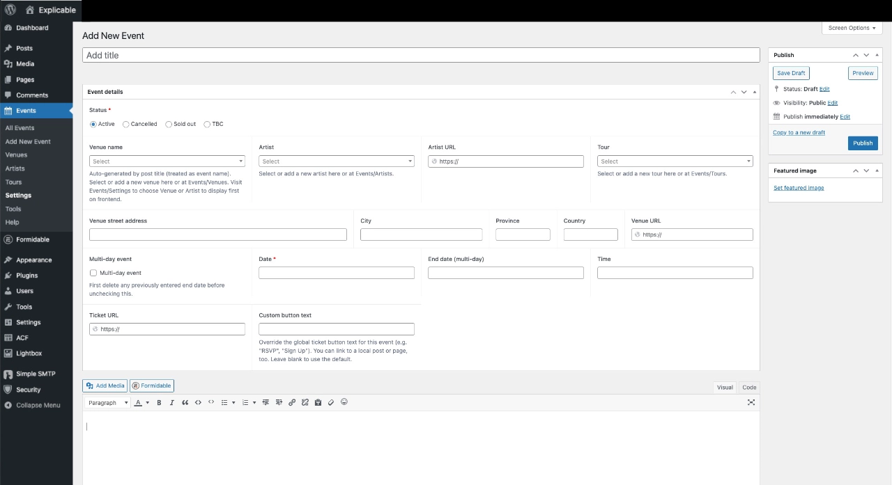 - Added descriptions and instructions to Venue name, Artist and Tours fields in the event editor