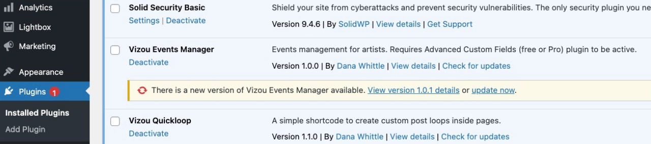 The Vizou Events Manager plugin was conceived for my own and my clients’ use (mostly musicians). We needed an easy way to add gigs to our calendars and display them in a variety of ways (upcoming, past, by artist).